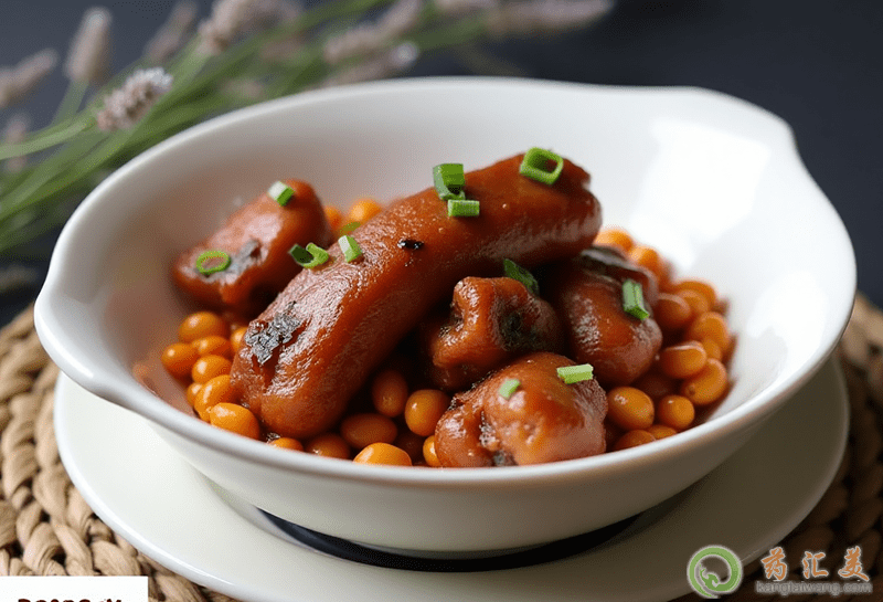黃豆燉豬蹄中的大豆茯苓功效甘平,有清熱去火的作用,而豬腳有滋陰潤燥的作用,合適腎陰虛、容易上火、心煩意亂的群體服用。