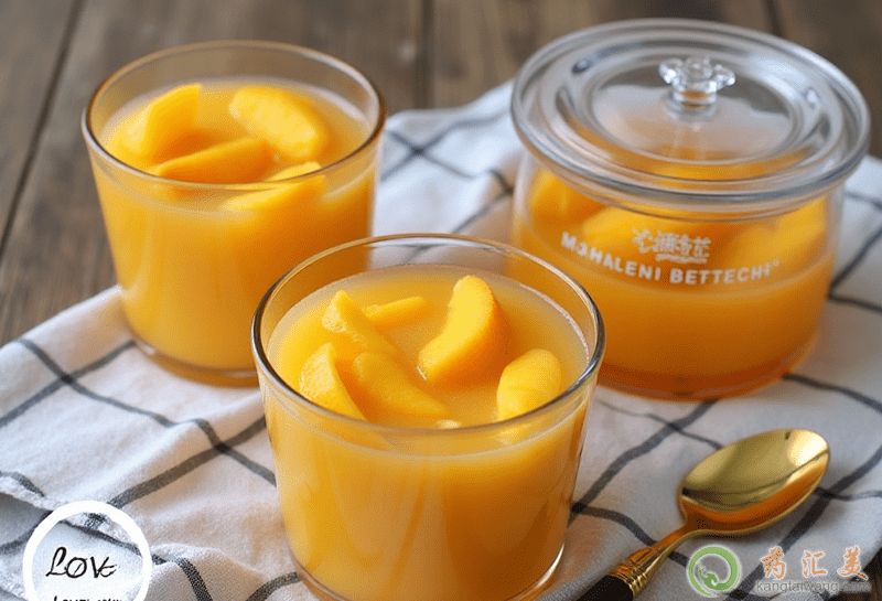 4、檸檬水是用于調(diào)節(jié)清甜味的,會(huì)讓糖水黃桃口味更清爽。