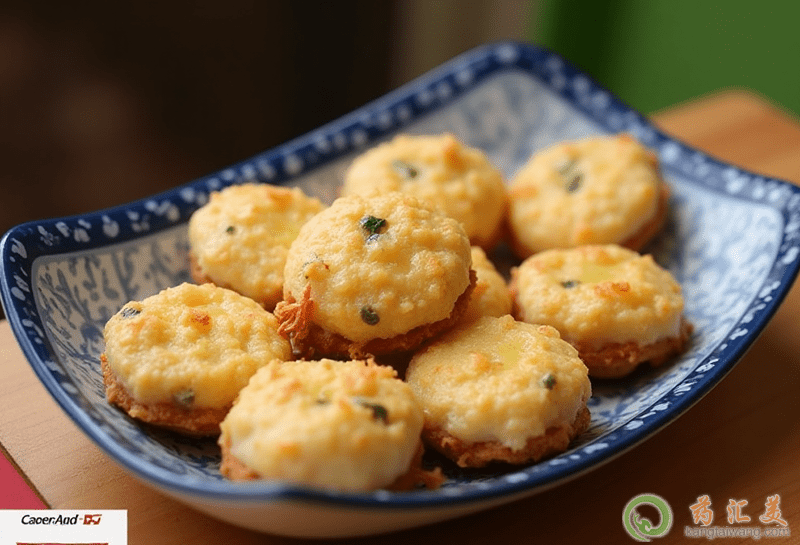 3、鍋上火,舀入熟豬油燒至六成熱,將餡心用手?jǐn)D成小圓子,逐個放入鍋內(nèi),炸至淡黃起殼時,撈起裝入盤內(nèi),撒入花椒鹽即可。