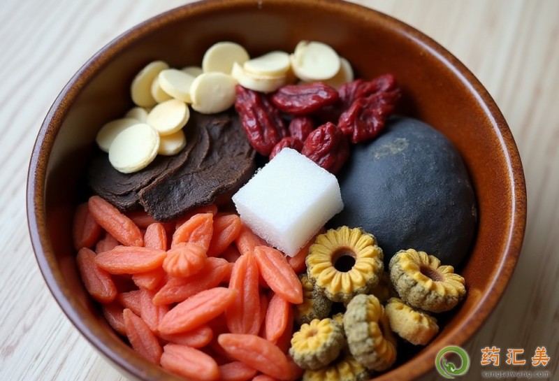 何首烏五克,生地五克,枸杞子五克,黃芪三克,菊花三克,再放上大棗三粒,再放一點點冰糖,多放點水煮開。