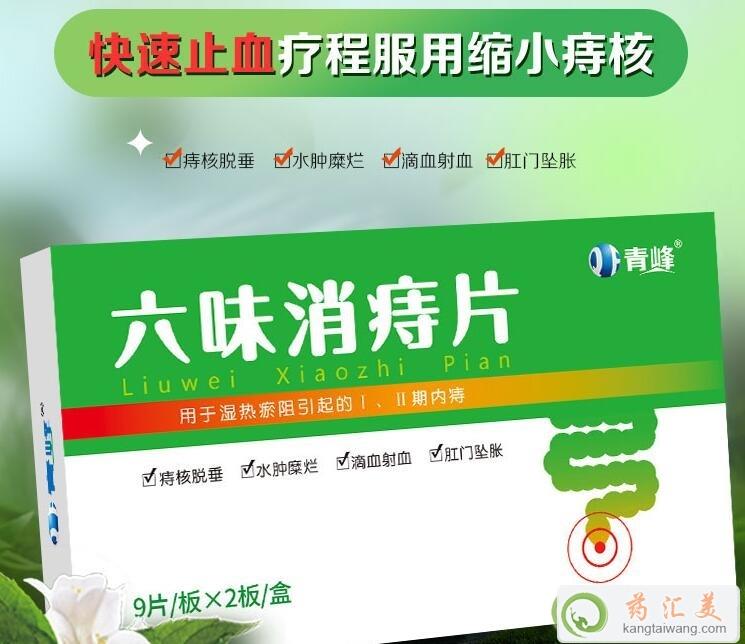 3、六味消痔片的主治:清熱消腫,收斂止血。用于濕熱瘀阻引起的Ⅰ、Ⅱ期內(nèi)痔,癥見:痔核脫垂,水腫糜爛,滴血射血,肛門墜脹。