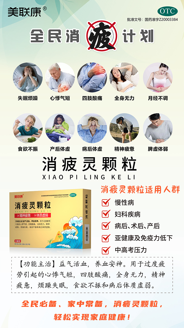 睡眠差,渾身乏力,來盒消疲靈顆粒試試。