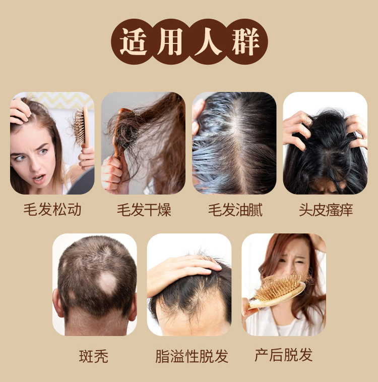 【功能主治】養(yǎng)血祛風(fēng),益腎填精。用于血虛風(fēng)盛、腎精不足所致的脫發(fā),癥見毛發(fā)松動(dòng)或呈稀疏狀脫落、毛發(fā)干燥或油膩、頭皮瘙癢;斑禿、全禿、脂溢性脫發(fā)與病后、產(chǎn)后脫發(fā)見上述證侯者。
