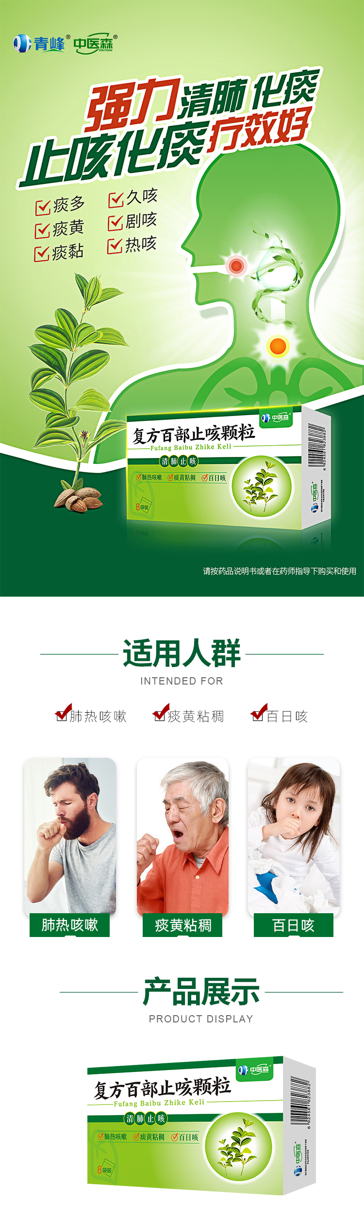 【功能主治】清肺止咳的功效。用于肺熱咳嗽,痰黃粘稠,百日咳。