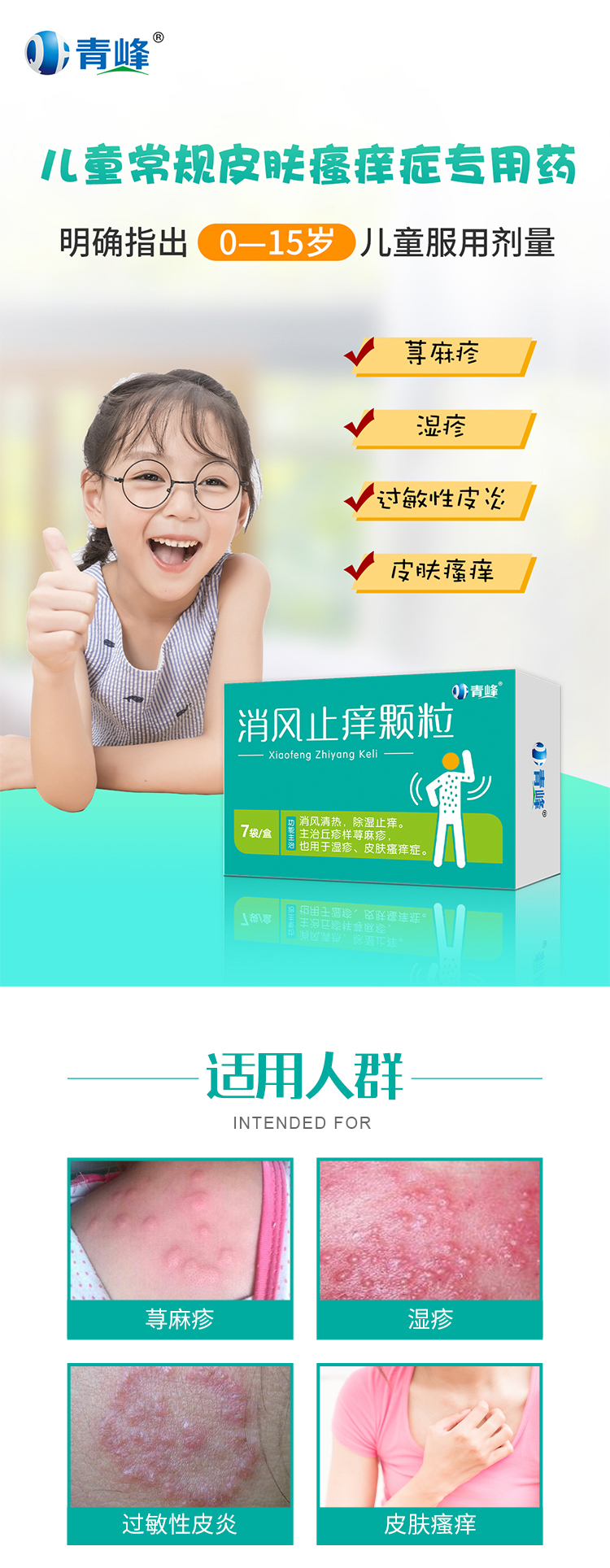 【功能主治】 消風清熱,除濕止癢。主治丘疹樣蕁麻疹,也用于濕疹、皮膚瘙癢癥。